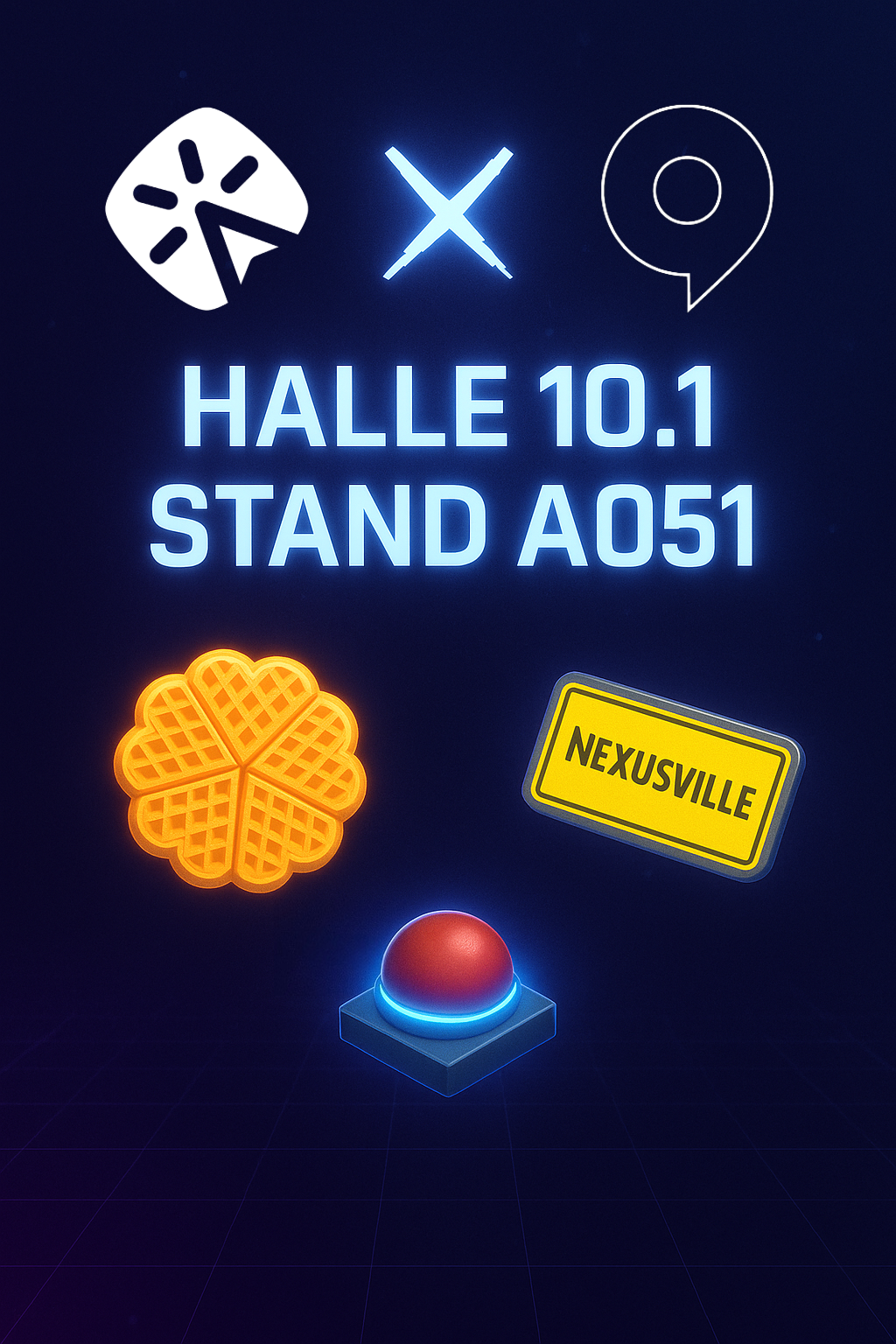 Auf unserem Gamescom Stand in Halle 10.1, Stand A051 erwarten Dich ein spannendes Buzzer-Quiz, das neue Detektivspiel Nexusville, dass wir gemeinsam mit der Verbraucherzentrale Bayern und der Firma Kastanie Eins entwickelt haben, sowie tolle Goodies und frische, leckere Waffeln!